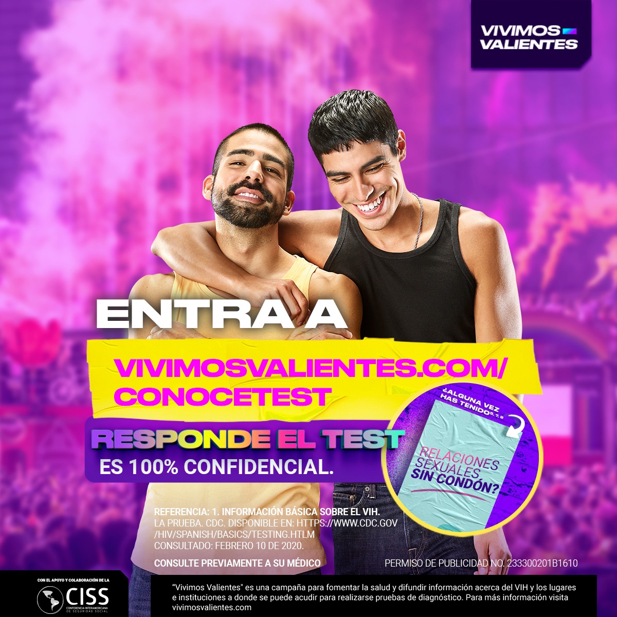 Parte del objetivo de la campaña Vivimos Valientes, es la difusión de este tipo de información, brindando accesibilidad a los servicios clínicos e instituciones a las que se puede acudir para la realización de pruebas y las facilidades que tienen, como el hecho de que en México las pruebas de detección y atención del VIH son gratuitas en todas las instituciones de salud. La campaña pone a disposición varios programas e iniciativas por parte de diferentes organismos como el CENSIDA, ONUSUDA y el Fondo de Población de las Naciones Unidas.