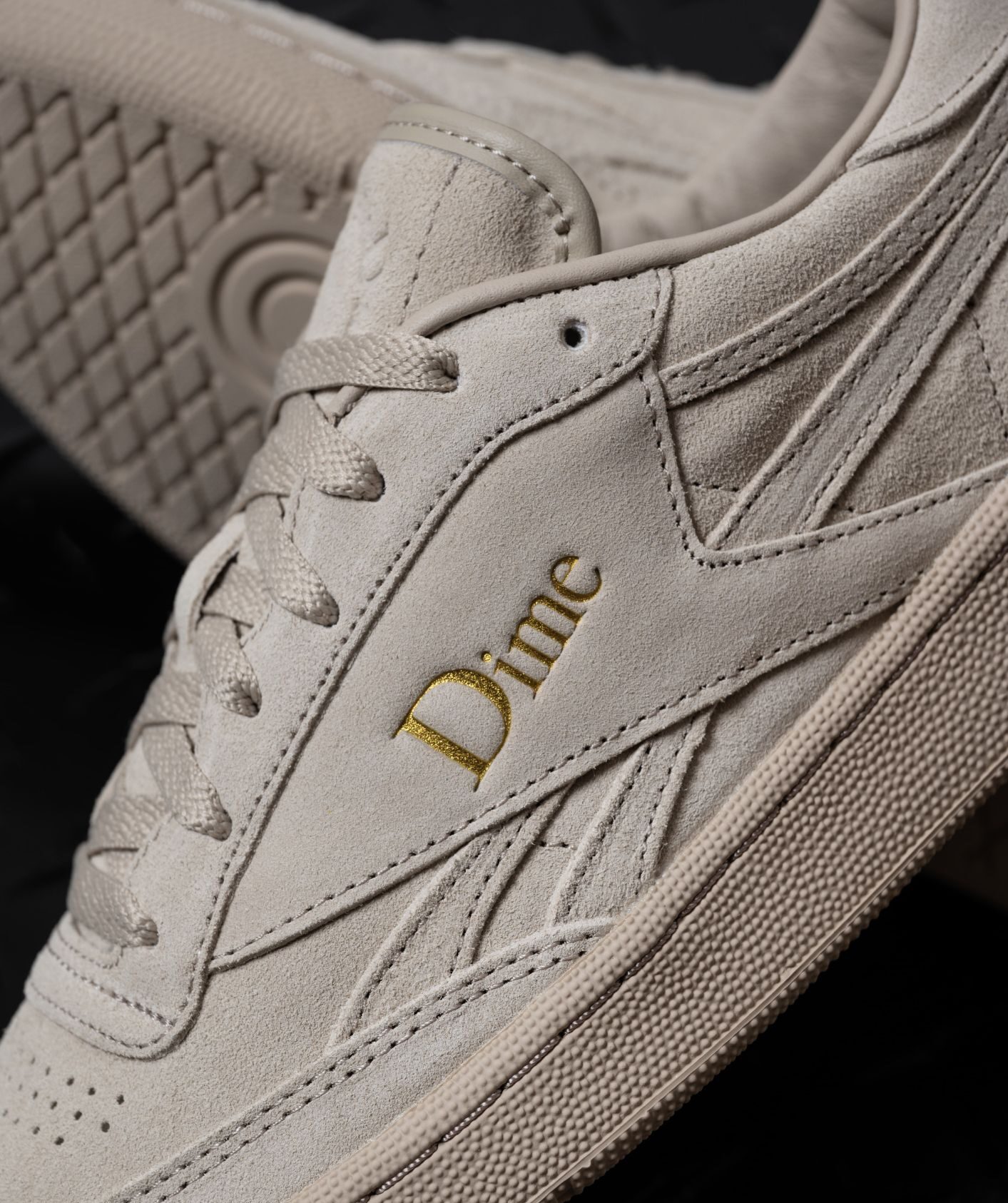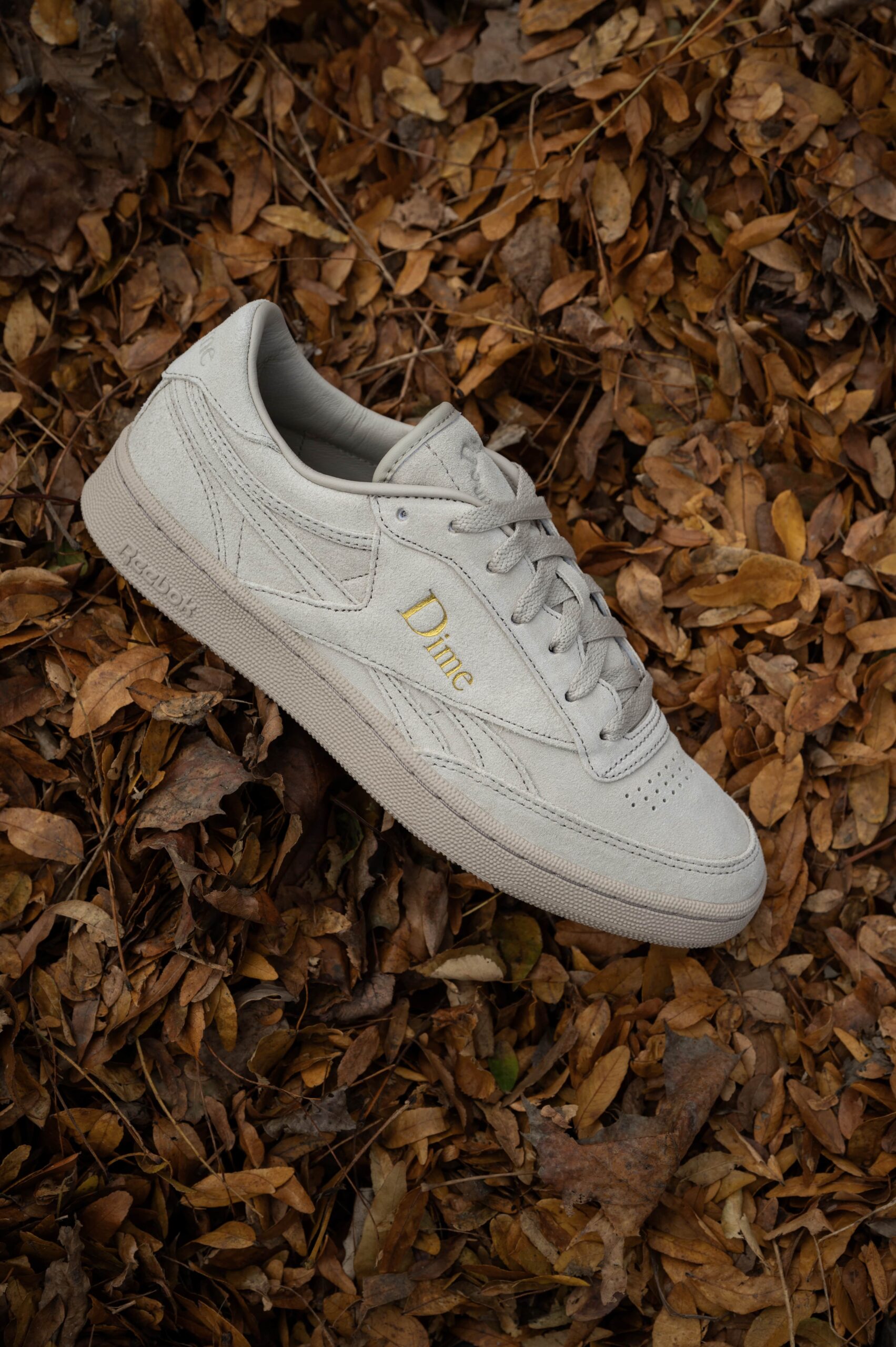 El Reebok x Dime Club C Revenge viene en color arena, el cual tiene una atemporalidad icónica asociada con el Club C. Donde los materiales son de primera calidad, como la gamuza y esos detalles dorados metálicos, la silueta está diseñada para ser compatible con cualquier look.