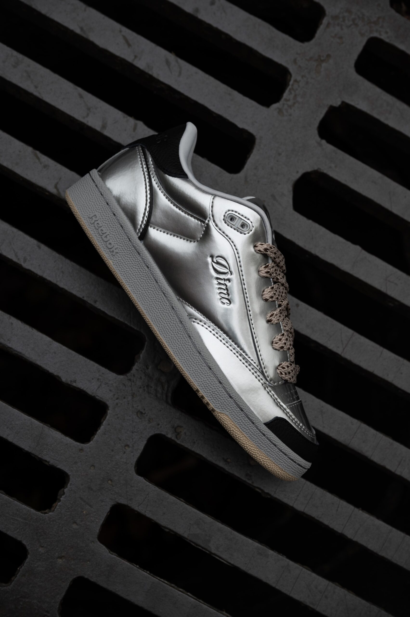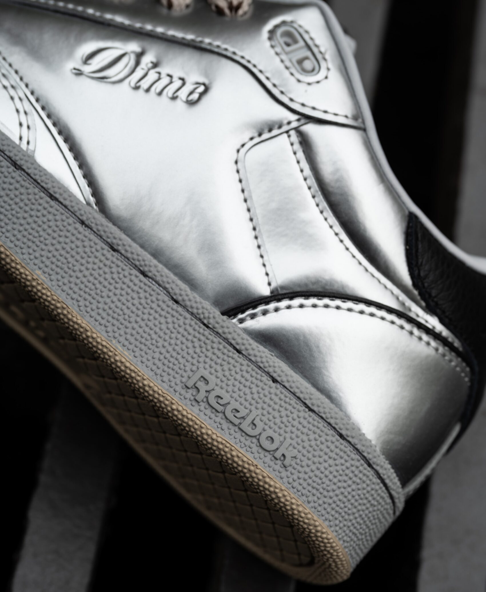 El Reebok x Dime CLUB C BULC, es el lanzamiento de silueta cuya inspo es super 2000s, traspasando los límites de la moda. La silueta cuenta con una parte superior metálica plateada con detalles negros en lengüeta del talón. El acabado de estos tenis son unos cordones beige modernos, haciendo alusión a la simplicidad clásica del Club C Revenge.
